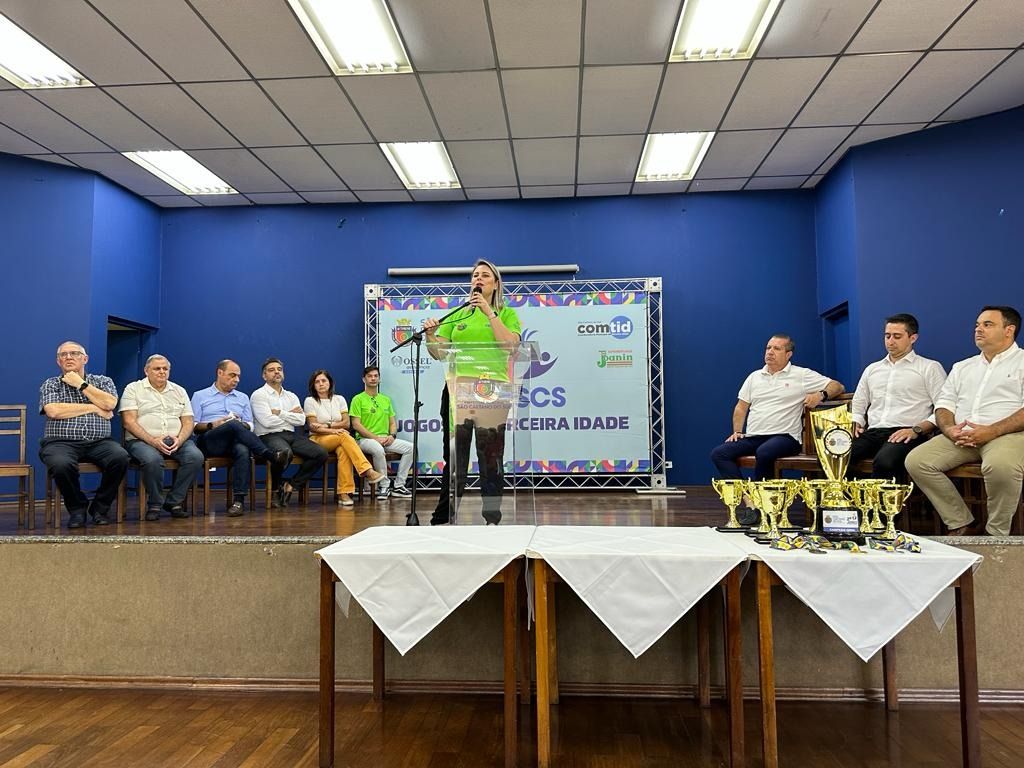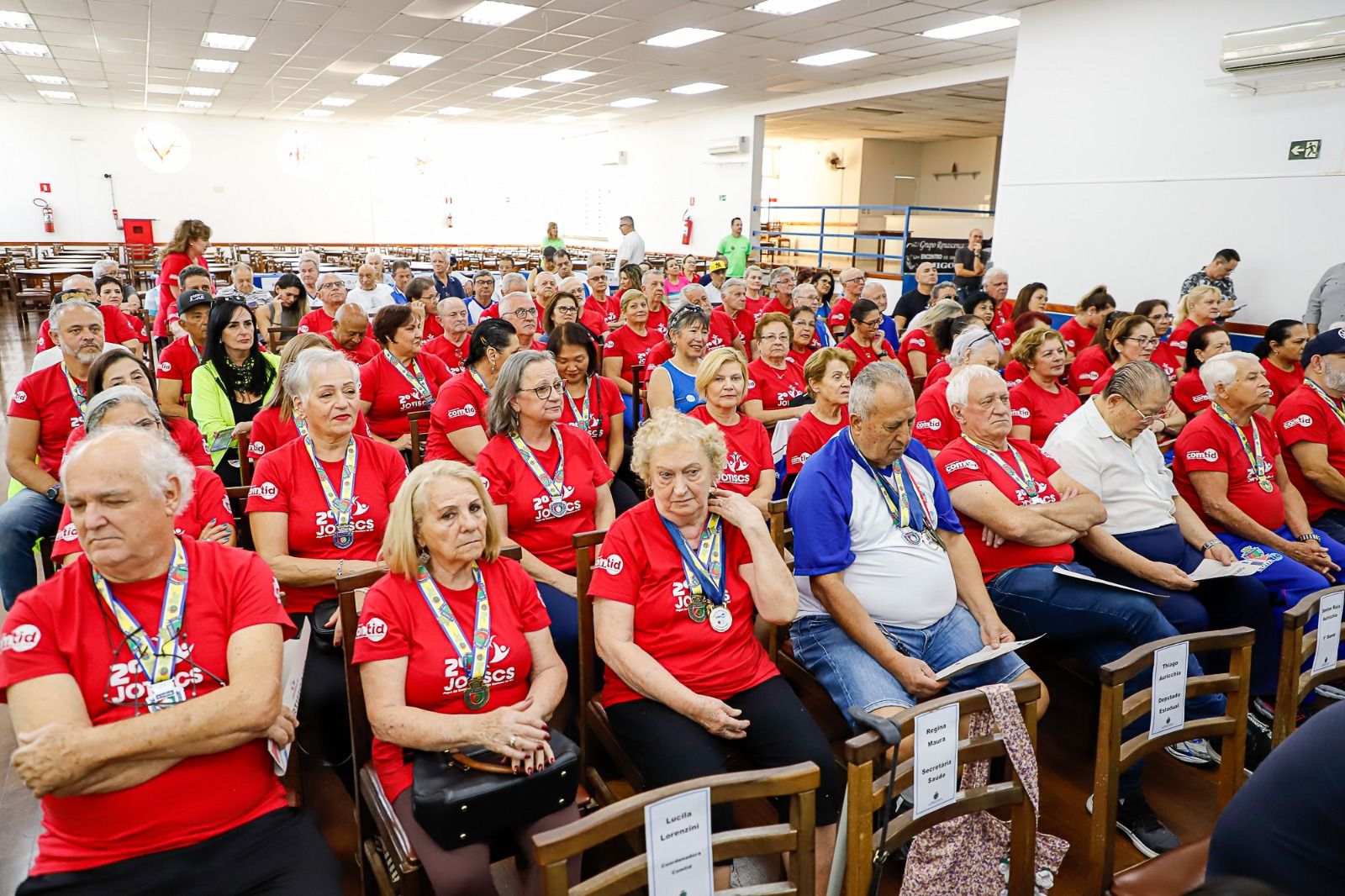 Os participantes do evento receberam certificados de participação e da conquista dos jogos. No total, 100 atletas da delegação campeã compareceram na homenagem que contava com a presença do prefeito; o vice-prefeito, Carlos Humberto Seraphim; os secretários da Sesaud, Regina Maura Zetone; e da SELJ, Mauro Chekin; a coordenadora do Comtid (Coordenadoria Municipal da Terceira Idade), Lucila Lorenzini; e vereadores.